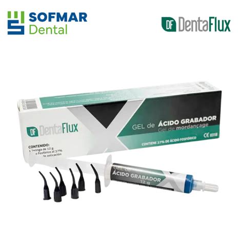 - Ácido fosfórico de Dentaflux: Está indicado para la grabación de esmalte y el acondicionamiento de dentina. Es un producto muy fácil de aplicar gracias a su jeringa con puntas incluidas.