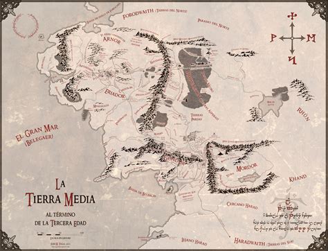 Mapa de la Tierra Media, el mundo fantástico creado por J.R.R. Tolkien.