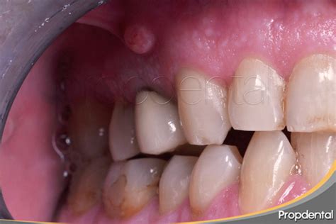 Una fístula en la encía es un canal milimétrico o abertura intra o extrabucal de drenaje por donde sale la pus de una infección de dentro del hueso. Lo hace, para la salida de pus hacia el medio externo y permitir el drenaje natural de un absceso. En las fístulas se observa inflamación con salida de pus en la encía se pueden presentar en cualquier edad. Esto provoca un bulto más o menos pequeño que puede sacar el pus o no. Si notas una zona blanquecina y un bulto en la encía que es prominente a la palpación debes acudir al dentista. Puedes encontrar las clínicas dentales Propdental en Barcelona, Madrid y Badalona.