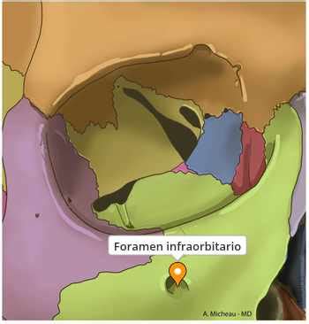 Ubicación esquemática del foramen infraorbitario (IOF)