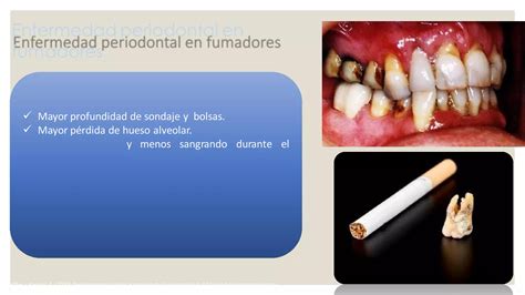 El tabaco agrava las enfermedades periodontales de varias maneras. Además, el tabaquismo puede hacer que los tratamientos periodontales sean menos efectivos.