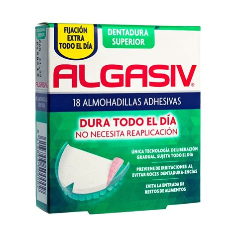 Algasiv Almohadilla Adhesiva Superior Triple Acción está diseñada específicamente para brindar una sujeción firme y duradera en prótesis dentales superiores. Este producto viene en presentaciones de 30 o 18 almohadillas adhesivas, pre-cortadas y listas para su uso.