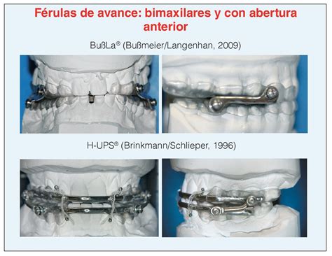 - Férulas de avance bimaxilares (y en general de dos componentes), de las que existen actualmente más de 70 tipos distintos en todo el mundo.