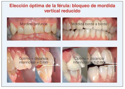 Si con la elección de la férula se pretende sobre todo no aumentar el bloqueo de mordida vertical, de por sí inevitable como resultado de factores (técnicos) asociados a la férula, habrá que tener en cuenta la recomendación general siguiente: