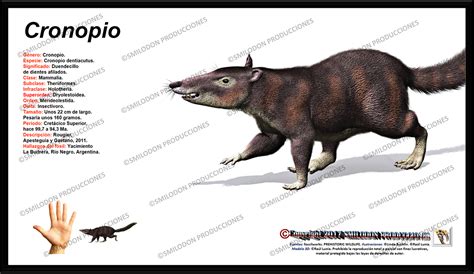 La nueva criatura, bautizada por los investigadores como Cronopio dentiacutus es un drioléstido (mamífero extinto emparentado con los marsupiales y placentarios actuales). Bautizado con el nombre de 'Cronopio' -en honor a Julio Cortázar- y el apellido 'dentiacutus' -por lo afilado de sus colmillos-, vivió en lo que hoy es Argentina hace algo más de 100 millones de años, a finales del Cretácico, en plena época de los dinosaurios.
