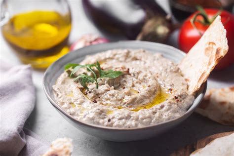 Baba Ganoush servido con pan de pita