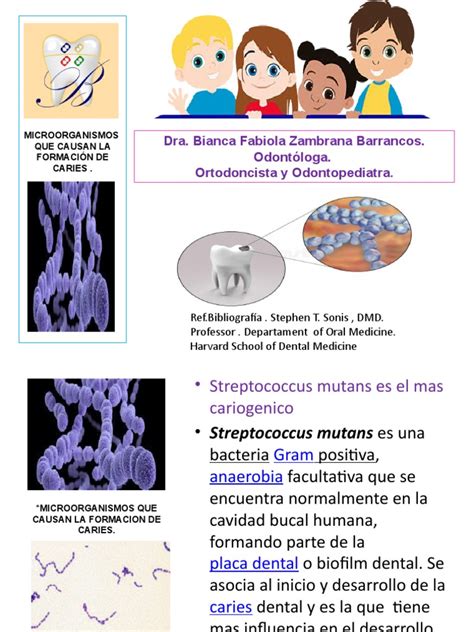 - Las bacterias responsables de las caries dentales son Streptococcus mutans, Streptococcus sobrinus y Lactobacillus.