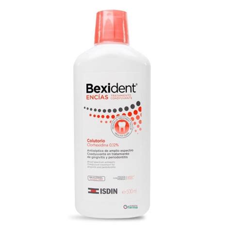 Bexident Encías con clorhexidina actúa como prevención y coadyuvante en el tratamiento periodontal y de gingivitis. Isdin Bexident Encías colutorio clorhexidina 500 ml te ofrece una potente acción antiséptica gracias a la clorhexidina.