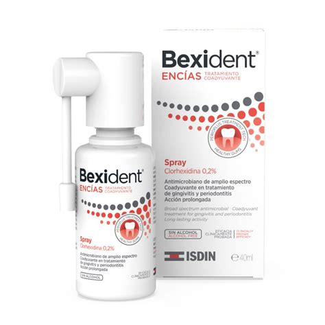 Bexident Encías Tratamiento Spray es un eficaz y potente antimicrobiano, diseñado para disminuir la inflamación y proporcionar una acción calmante. Este producto se utiliza tanto para la prevención como coadyuvante en el tratamiento periodontal, preimplantario, y en cirugías periodontales y maxilofaciales.
