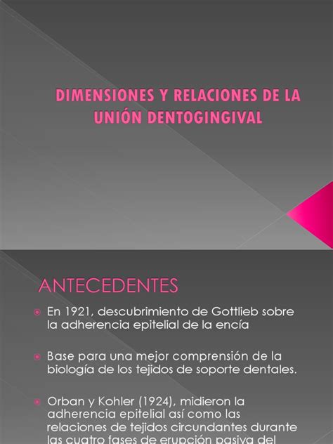 En la literatura se encuentran presentes dos artículos destacables respecto al estudio de la unión dentogingival, que se basaron en el estudio y medición de múltiples muestras histológicas procedentes de necropsias: