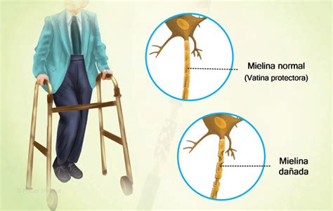 Esclerosis Múltiple: Daño a la mielina en el sistema nervioso central.