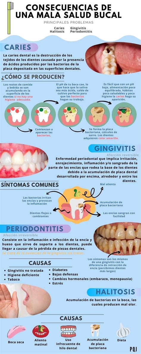 - Salud mental y bienestar: La salud bucal también puede afectar la autoestima y la salud mental.