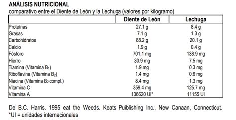 Composición Nutricional del Diente de León
