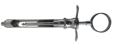 Dentro de esta clasificación entran las jeringas de cristal, las jeringas desechables, las jeringas metálicas Yutil y las jeringas tipo Carpule, que por lejos son las más utilizadas y por lo tanto ampliaremos su descripción. Las jeringas tipo carpule tienen grandes ventajas frente a otro tipo de jeringas para la administración locorregional de anestesia, algunas de ellas son la capacidad que tienen de aspirar mediante la tracción posterior del émbolo, la posibilidad de cambiar las agujas de una forma fácil y rápida, la posibilidad de ser esterilizadas sin sufrir daños y su fácil control.
