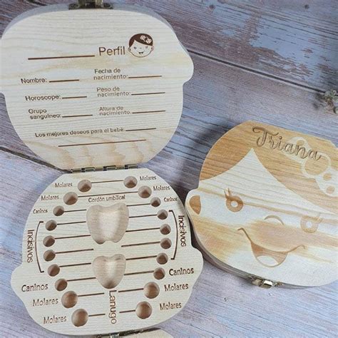 La caja de dientes personalizada de madera, donde guardar los dientes de leche, es un regalo original y práctico. ¿Se le están cayendo los dientes a tu pequeño? La mejor forma de guardarlas es con nuestra caja de dientes de madera de pino natural con su nombre grabado en la tapa. Esta cajita de madera, con compartimentos para cada diente, es el lugar perfecto para guardar esos tesoros y recordar cada sonrisa.