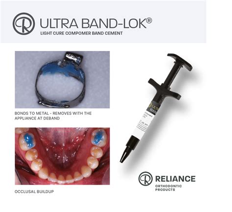 Cuando se utilizan bandas molares, especialmente en casos donde se emplean aparatos intraorales adicionales, o cuando se van a realizar movimientos muy fuertes con aparatos extraorales o microtornillos, es recomendable utilizar un adhesivo específico para bandas. Ultra Band Lok es un cemento fotopolimerizable que se adhiere al metal, facilitando la limpieza tras la retirada de la banda.