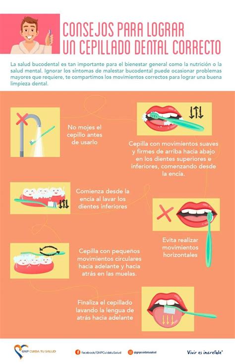 - Asegurar de cepillar cada área de los dientes y las encías, incluyendo los dientes traseros y el área detrás de los incisivos.