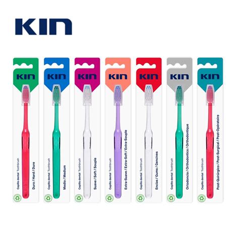 - KIN Encías: Cepillo dental que contiene cerdas adecuadas para la limpieza e higiene de pacientes propensos a patología periodontales y sensibilidad en encías. El cepillo dental KIN Encías, estimula las encías y remueve profundamente la placa bacteriana evitando las inflamación de encías, y la formación de caries sin maltratar el esmalte dental. Su diseño ergonómico facilita su manejo, abarcando toda la cavidad oral garantizando una mejor limpieza y cuidado diario en las piezas dentarias. El cepillo de dientes para encías dispone de un diseño especial en sus filamentos que proporcionan un estimulante masaje sobre los dientes y encías para mejorar la circulación. Los cepillos de dientes para encías tienen unos filamentos de dureza media ideales para usar en la higiene bucal diaria.
