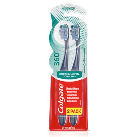 El cepillo de dientes Colgate 360° ofrece un cuidado superior para toda la boca. El diseño único del cepillo, con cerdas cónicas muy compactas, una punta elevada, copas de pulido de goma blanda y un limpiador de lengua texturizado, elimina más placa que un cepillo manual normal.