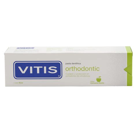 VITIS Dentífrico es ideal para quienes llevan ortodoncia, gracias a su fórmula con flúor y su agradable sabor a manzana-menta. Se presenta en un envase de 100 ml y tiene un precio de 7,54 € (75,40 € por litro).