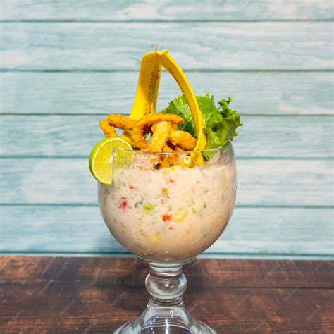 Si se va a servir como bebida, servimos la leche de tigre bien fría en un vaso decorado al gusto. En nuestro caso la acompañamos con patacones, lima, cilantro y un poco de choclo.