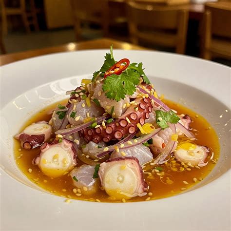 El ceviche nikkei es una de las creaciones más emblemáticas de esta fusión. Tradicionalmente, el ceviche peruano se elabora con pescado fresco marinado en zumo de limón, acompañado de cebolla, ají y cilantro.