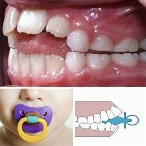 Para que el chupete deforme los dientes de los niños de forma visible, el bebé tendría que ejercer una succión constante durante unas seis horas diarias con una intensidad considerable. En estos casos, los dientes centrales inferiores podrían desviarse hacia el centro, los superiores podrían separarse y sobresalir, además de que los caninos chocarían entre sí.