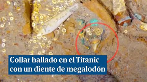 Imagen del collar de diente de megalodón hallado en el Titanic