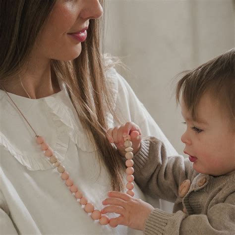 El collar de lactancia, también conocido como collar de amamantamiento o mordedor de lactancia, es un accesorio diseñado específicamente para ser utilizado durante los momentos de lactancia entre madre e hijo. Estos collares están hechos con materiales seguros y suelen presentar texturas y colores atractivos para los bebés.