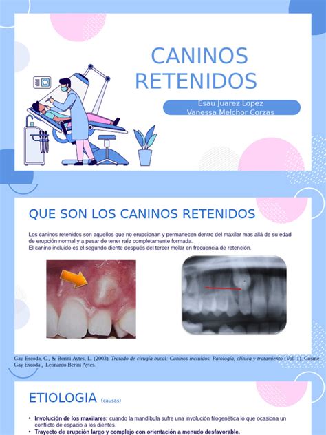 Los caninos superiores suelen ser los últimos dientes en erupcionar, alrededor de los 11-13 años. No obstante, en algunos casos, pueden quedar retenidos por diversas razones:
