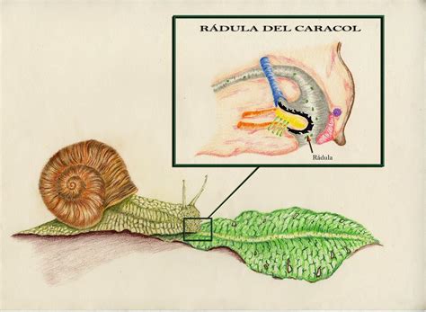 La rádula es una estructura fascinante; es el equivalente a una lengua aserrada. El caracol usa la rádula para raspar, cortar y trocear su alimento. Tal vez no lo hayas visto muchas veces, ya que la mayoría come por las noches.
