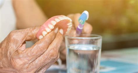 - La dentadura postiza debe remojarse a diario con jabón o pastillas limpiadoras y cepillarlas. Deben aclararse muy bien antes de volverlas a introducir en la boca.