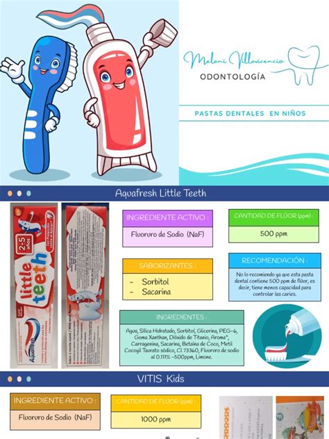 - Niños de 3 a 6 años: Pasta dental con 1000 ppm de flúor.