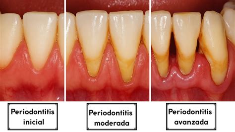 Las bacterias acumuladas de forma crónica en las encías producen inflamación, denominada gingivitis y, si esta se mantiene en el tiempo, provocará, además, recesión gingival, mal olor de boca o halitosis; si la gingivitis avanza y comienza la destrucción del hueso de soporte del diente se transforma en periodontitis, la cual presenta 3 fases: leve, moderada y severa.