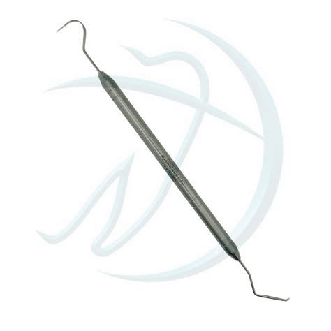 - Explorador: El explorador permite tocar y revisar diferentes caras del diente para poder verificar asentamientos de prótesis, contactos, etc. Se le conoce también como sonda exploradora. Existen varios tipos de sondas exploradoras en forma de hoz o bastón.