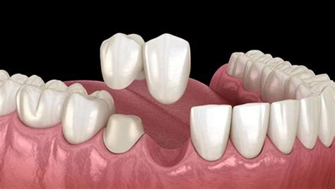 Un puente dental fijo típico está compuesto por tres coronas dentales: dos llamadas pilares y una central conocida como póntico.