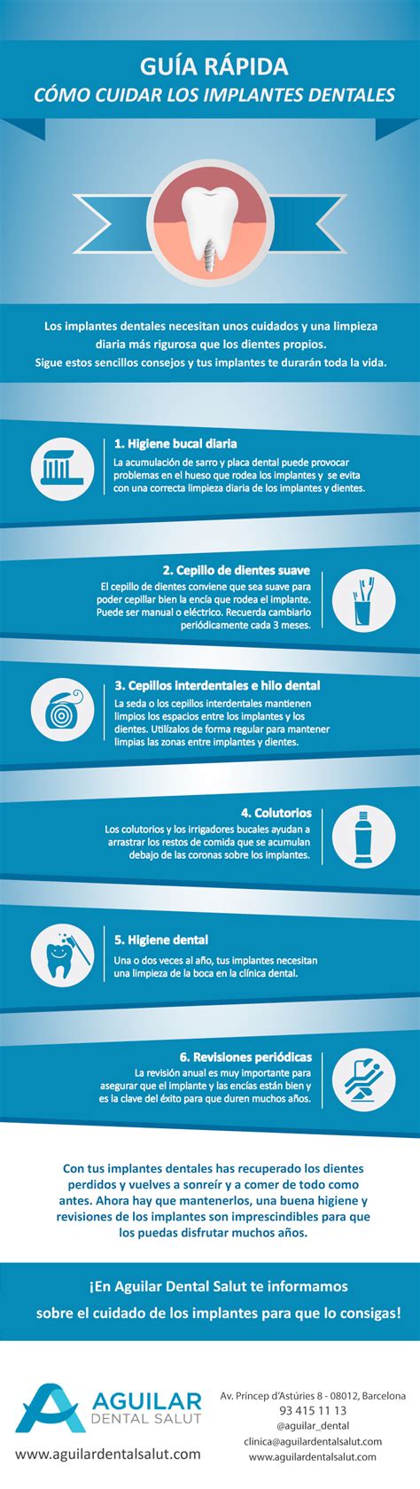 Mantener una buena higiene oral es crucial para la longevidad de los implantes. Esto incluye cepillado regular, uso de elementos de higiene interdental y visitas periódicas al dentista. También los pacientes que llevan prótesis completas sobre implantes tienen necesidades específicas ya que sus prótesis ocupan toda la boca y normalmente no se pueden retirar en casa.