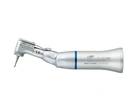 - Contra ángulo dental de transmisión directa: Se trata de aquellos tipos de contra ángulos que no afectan a la velocidad que imprime el micromotor. Estos rotatorios trabajan con una relación de transmisión 1:1, es decir, 1 vuelta de motor por 1 vuelta de fresa. Se suelen identificar con un anillo de color azul en el propio contra-ángulo.