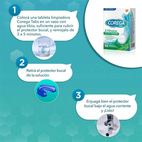 Usar Corega Ortodoncias y Férulas es sencillo y efectivo. Simplemente coloca una tableta limpiadora en un recipiente con suficiente agua para cubrir completamente tu aparato dental. Sumerge el aparato en la solución efervescente y déjalo actuar durante el tiempo recomendado en las instrucciones del paquete. Tras este proceso, enjuaga bien tu aparato dental bajo agua corriente.