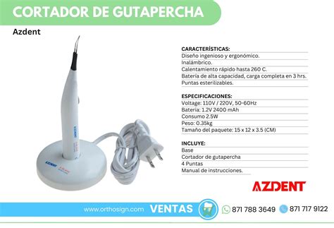 Sus 4 puntas intercambiables de diversas formas agilizan y permiten un uso sencillo en conductos anchos o estrechos. Son esterilizables en autoclave. No sumergir en líquidos desinfectantes. Su batería ofrece 80 cortes por carga.