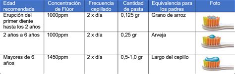 Las pastas infantiles vienen con saborizante para que a los más pequeños le agrade. Los sabores más comunes son fresa y naranja, esta se adapta a la necesidad del niño. Los más pequeños, menores de dos años, suelen tragar la mayoría o toda la pasta de dientes cuando se cepillan. Por eso, para ellos se recomienda que tengan entre 600 y 1000 ppm. En cuanto al uso de la pasta de dientes para niños lo mejor es medir la cantidad que se aplica en el cepillo. Para los menores de tres años la recomendación es el tamaño de un grano de arroz. De 3 a 6 años del tamaño de un guisante y asistirlos en el cepillado para que aprendan a escupir.
