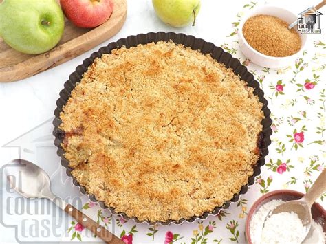 La receta tradicional incluye manzana, denominándose 'apple crumble'. Aquí te presentamos una deliciosa receta: