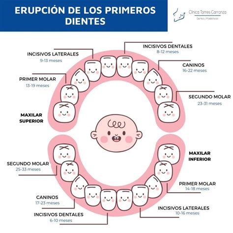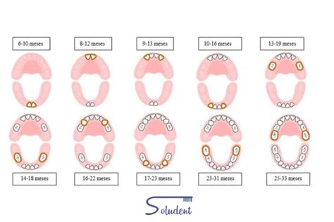 Como regla general, al bebé le sale un diente nuevo cada mes después de la erupción del primero. El tiempo que tarda en salir cada diente puede variar considerablemente. Las molestias de la dentición suelen empezar cuatro días antes de la erupción y pueden continuar durante tres días después. Incluyendo el día de la erupción, hay ocho días en los que el bebé puede sufrir molestias de dentición. Esta es la conclusión de un estudio de la Academia Americana de Pediatría. El desarrollo de los dientes permanentes comienza cuando tu bebé aún gatea.