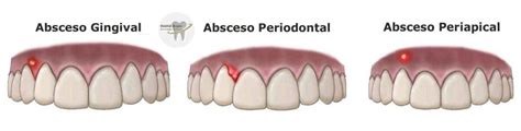 El absceso periapical forma una lesión alrededor del ápice (“la punta” de la raíz dental), cuya causa suele estar en caries profundas no tratadas o traumatismos. El absceso periodontal generalmente se localiza cerca del margen de la encía, figurando, entre sus posibles causas, la enfermedad periodontal.