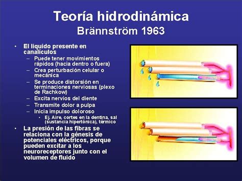 La teoría más extendida sobre la aparición del dolor en cuellos dentales hipersensibles es la teoría hidrodinámica según Brännström. Dicha teoría postula que toda estimulación externa con los túbulos dentinarios abiertos conduce a una deformación de la superficie y por ende a un desplazamiento del licor en el interior de los túbulos. Como consecuencia se desencadena un potencial de acción en los mecanorreceptores pulpares que estimulan preferentemente las fibras A-δ mielinizadas, las cuales son en última instancia las responsables de transmitir el dolor al cerebro.