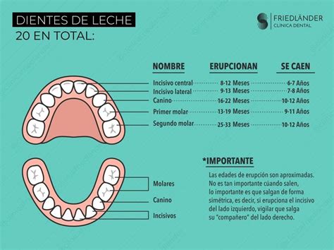 La tabla siguiente muestra a qué edades salen los dientes aproximadamente.