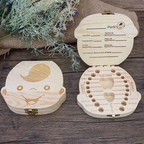 - A todo color: Se convertirá en un objeto de decoración que el niño no querrá quitar de su cuarto ni cuando sea adolescente. Esta bonita puerta de madera está disponible en cinco colores distintos. Incluye tres certificados donde apuntar el estado del diente y una cajita de cartón donde los padres pueden ir depositando las piezas envueltas cuidadosamente.