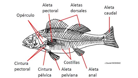 En general, los peces tienen forma ahusada, con el cuerpo moderadamente aplanado en los lados y más afilado en la zona de la cola que en la de la cabeza. Sus principales rasgos son el juego de vértebras repetido en serie y los músculos segmentados, que permiten al pez desplazarse moviendo el cuerpo de forma lateral. Por lo general el cuerpo está dotado de una serie de aletas, formadas por membranas con una armadura de espinas, que actúan como medio de propulsión o de orientación del movimiento.