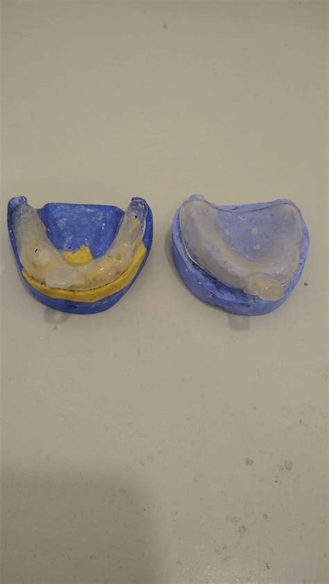 Se dobla en dos y se adapta sobre el modelo de diagnostico. Luego se corta los excesos de plancha y se adapta teniendo cuidado de no recortar la zona de los frenillos ya que deben salir en la impresión. Luego hay que hacerle un asa moldeando una plancha base en forma rectangular partiendo de la parte mas corta.