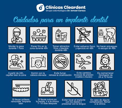 - Actividad física: La actividad física debe limitarse durante las primeras 24 a 48 horas después de la cirugía del implante dental. El esfuerzo excesivo puede provocar sangrado y malestar postoperatorio.